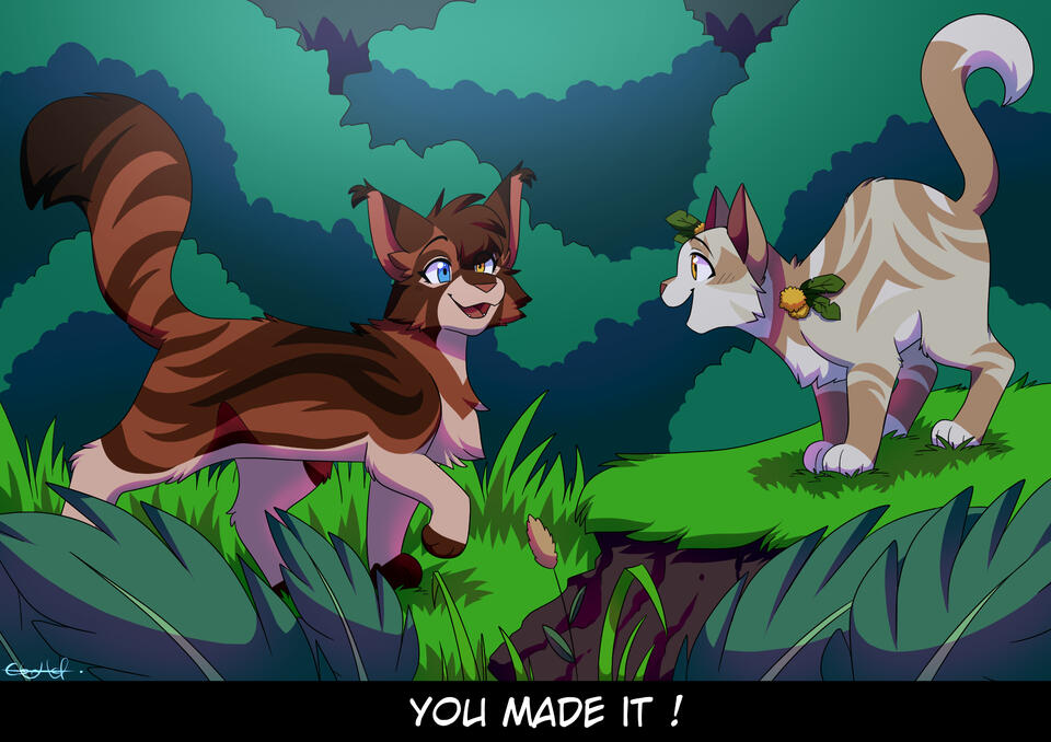 I discovered Warriors as a kid - probably around 11 thanks to fanarts of it on DeviantArt - and asked my dad to buy me Into the wild because I really wanted to understand what was up with all those funny battle kitties. Little did I know, I was stepping into something that immensely impacted my life and art.I started creating my own Clans and Warriors OCs in a pretty random way: I was messing around with a cat creator flash game, and thought "well this cat looks nice, gonna name him ChestnutHeart", then I created his mate, then other warriors, then I made a cat version of my 6 main OCs... And soon I had a full Clan that I later named MoonClan. The rest is history!