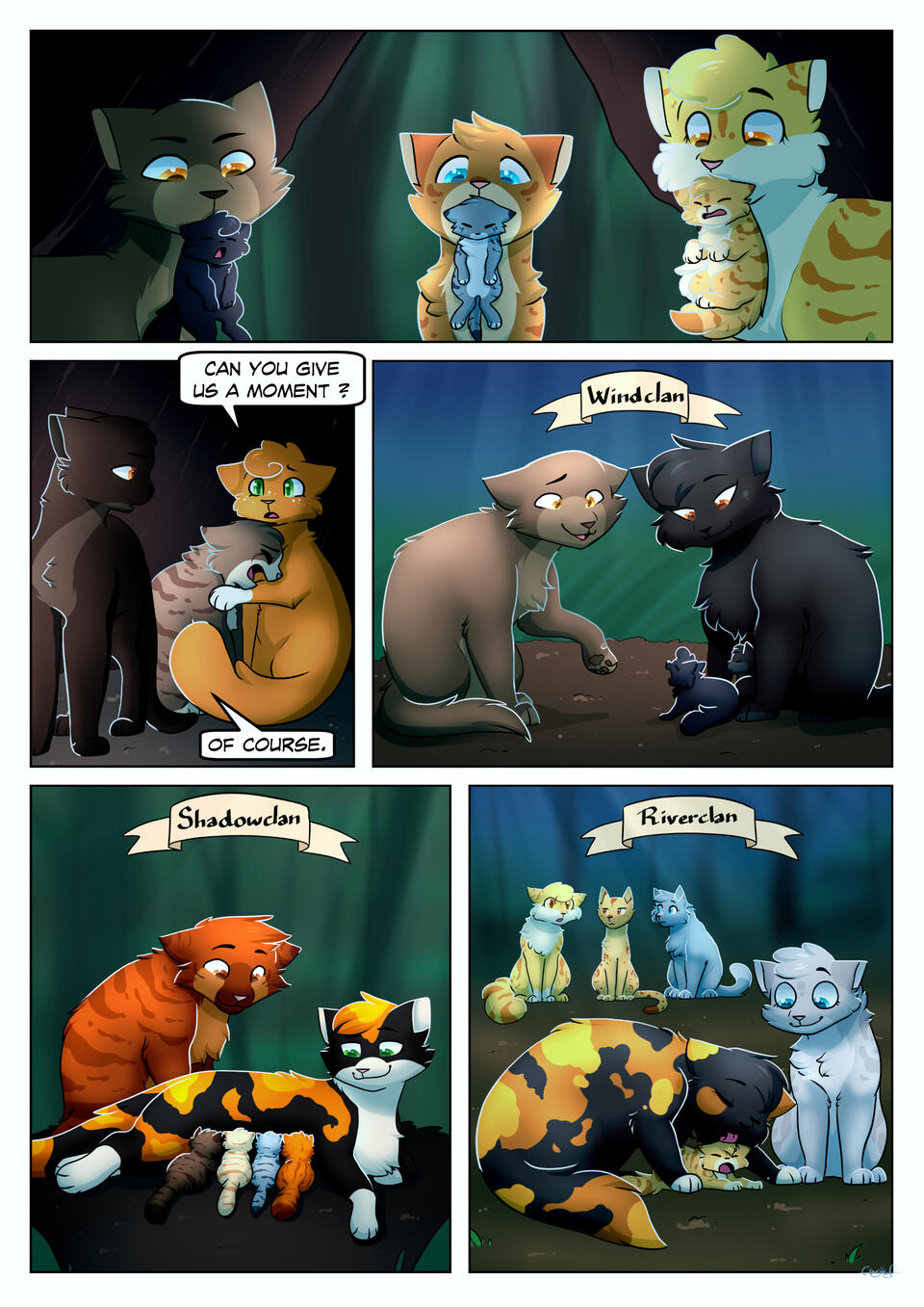 I discovered Warriors as a kid - probably around 11 thanks to fanarts of it on DeviantArt - and asked my dad to buy me Into the wild because I really wanted to understand what was up with all those funny battle kitties. Little did I know, I was stepping into something that immensely impacted my life and art.I started creating my own Clans and Warriors OCs in a pretty random way: I was messing around with a cat creator flash game, and thought "well this cat looks nice, gonna name him ChestnutHeart", then I created his mate, then other warriors, then I made a cat version of my 6 main OCs... And soon I had a full Clan that I later named MoonClan. The rest is history!